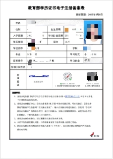 《教育部学籍在线验证报告》《教育部学历证书电子注册备案表》《中国高等教育学历认证报告》《国(境)外学历学位认证书》示例照片